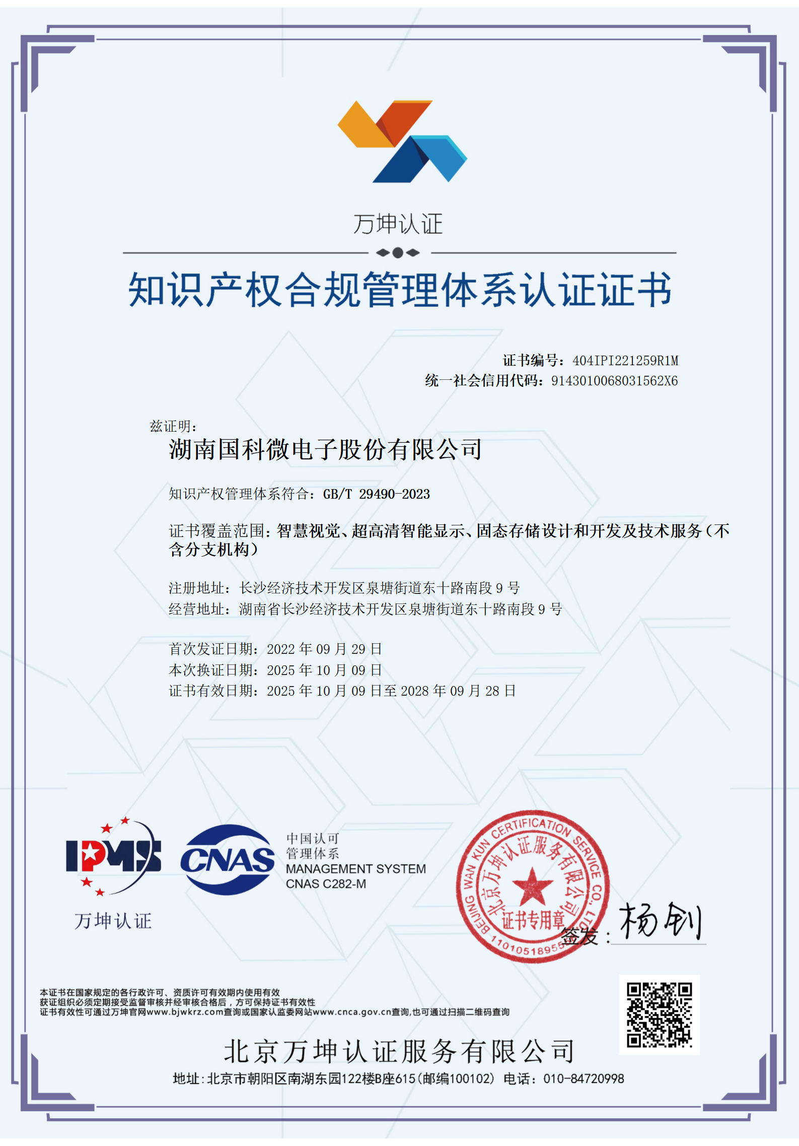 知識產(chǎn)權管理體系認證證書